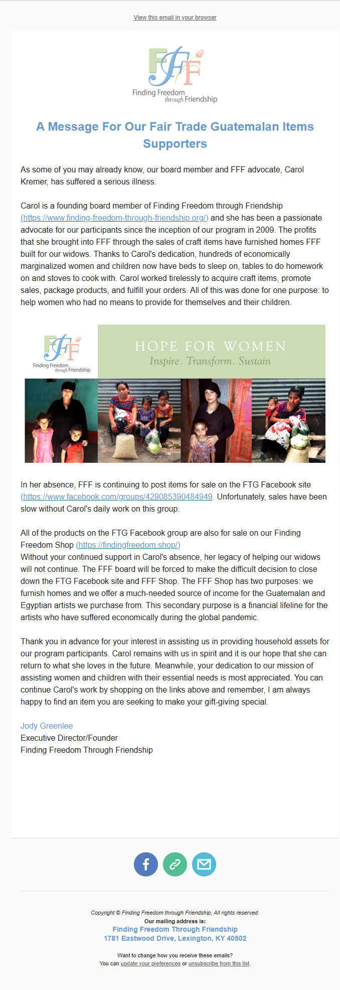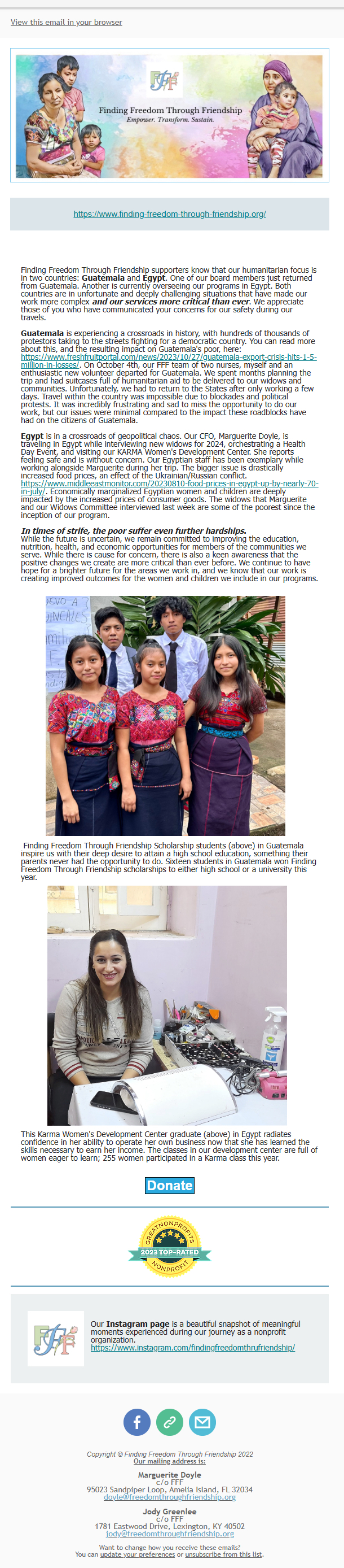 Blog (Guatemala): https://www.freedomthroughfriendship.org/